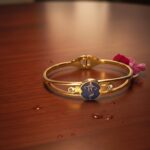 • Ganesha Kada: A polished gold-toned bracelet with a striking blue and gold Ganesha emblem, flanked by shimmering crystals.