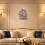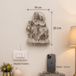 Measuring 32 cm in height and 19 cm in width, this wall-mounted idol is perfectly proportioned for living rooms, entrance hallways, or dedicated prayer areas. Its sleek, monochrome silver palette allows it to blend effortlessly with various interior styles, from contemporary minimalist to classic Indian decor.